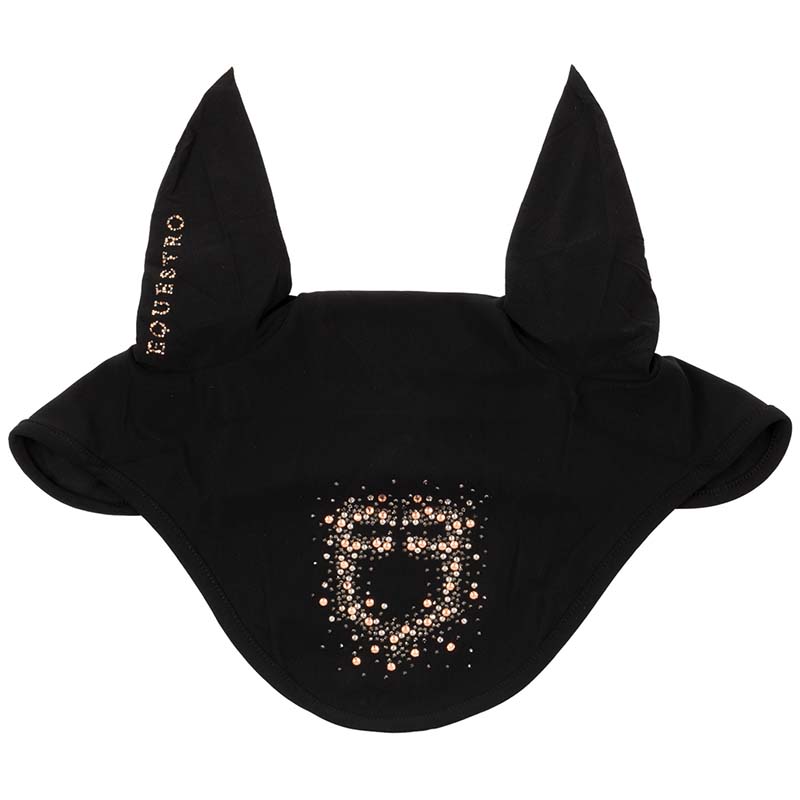 Equestro Fliegenhaube aus atmungsaktiver Baumwolle mit Glitzer-Logo, bequem und elegant für Ihr Pferd. Die Equestro Fliegenhaube ist aus hochwertiger Baumwolle gefertigt und bietet ein angenehmes, weiches Gefühl auf der Haut des Pferdes, sodass es dank der natürlichen Atmungsaktivität des Stoffes kühl und trocken bleibt. Das Design dieser Haube ist so konzipiert, dass es sich perfekt an die Form der Ohren des Pferdes anpasst. Durch die elastischen Ohrenabdeckungen bleibt der Ohrbereich vor Insekten, Fliegen und störenden Geräuschen geschützt. Das Equestro-Logo aus Kristallen auf der Vorderseite ist ein elegantes Detail und verleiht bei wichtigen Wettbewerben einen Hauch von Raffinesse und Glamour.