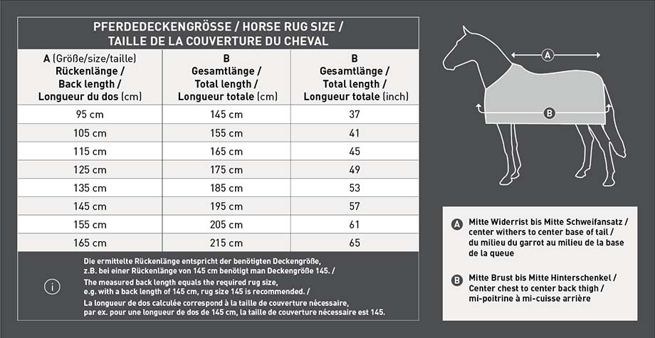 Diese Decke besitzt ein innenliegendes Inlay, eine dünne Stoffschicht, mit der du die Decke an deinem Pferd ausprobieren kannst, ohne sie zu verschmutzen oder zu beschädigen. Wenn die Passform stimmt, lässt sich das Inlay einfach entnehmen.