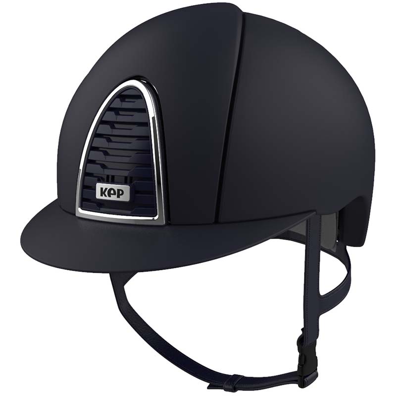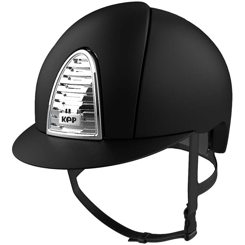 Die Grundstruktur des Helmes besteht aus drei passgenauen Teilen, die, obwohl perfekt ineinander gefügt, für gewundene Belüftungsschlitze Raum lassen, die so eine effiziente Luftzirkulation ermöglichen, und die zudem dank deutlich erhöhter mechanischer Widerstandskraft höchste Sicherheit bietet. Die Innenschale aus Styropor besitzt eine ausgeklügelte Passform. Seine doppelte Dichte garantiert eine bessere Stossabsorption. Sehr wirkungsvoll das chromfarbene frontale Lüftungsgitter mit manueller Regulierung der ein- und ausströmenden Luft durch leichtes Verschieben des mittig angebrachten Verstellknopfes. Die indirekte Belüftung erfolgt durch das Einströmen von Frischluft durch eine unter dem Visier liegende Öffnung und über die sichtbaren Öffnungen an der Helmvorderseite und entweicht über schlitzförmige Öffnungen, die hinten an der Innenschale angebracht sind. Die Helmaußenseite ist aus lackiertem Polykarbonat im High – Tech - Design und in der eleganten “Textil - Style”. Das komplett herausnehmbare und waschbare Innenpolster ist direkt mit einem anatomischen Polster verbunden, das sich optimal an die Form des Nackens anpasst und höchsten Komfort bietet. Die Verwendung technisch hochwertiger Materialien ermöglicht eine optimale Regulierung des Feuchtigkeitshaushalts: Coolmax in Verbindung mit offenzelligen Filtern und samtweichen Mikrofasern. Der mittels dreier Ringschlaufen direkt am Helm befestigte Kinnriemen ist komplett mit weichem antiallergischem Soft-Leder bezogen, waschbar und längenverstellbar und besitzt einen Easy – Lock – Verschluss. GEWICHT 400 Gramm Der Helm wird in einer praktischen, wasserdichten Helm-Transporttasche mit weichem Antikratz-Innenfutter geliefert, dem sog. Porta Kep. Diese Tasche besitzt zwei seitliche Außenfächer für Handschuhe und sonstiges Zubehör mit einem Klarsichtfach für Ihre persönlichen Daten. Ein spezielles Reinigungstuch ist im Lieferumfang enthalten. AUF WUNSCH: Der Helm kann in den Farben Ihrer Mannschaft gestaltet, mit der Flagge Ihres Landes oder dem Namen des Reiters versehen werden.