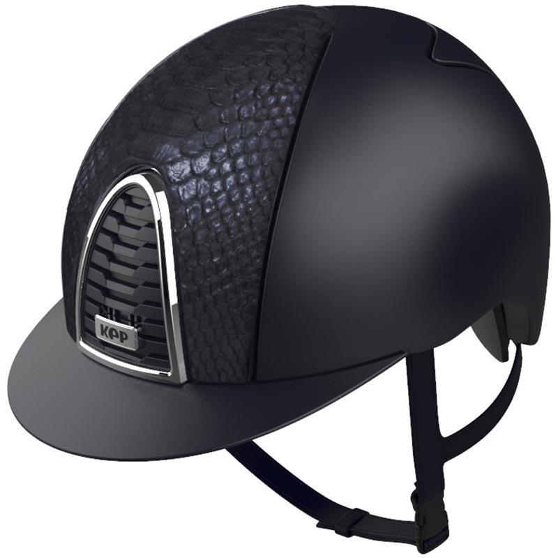 Das Helmmodell “CROMO T” (siehe Artikel 2073). Die helm ist mit echtem Schlangenleder überzogen.