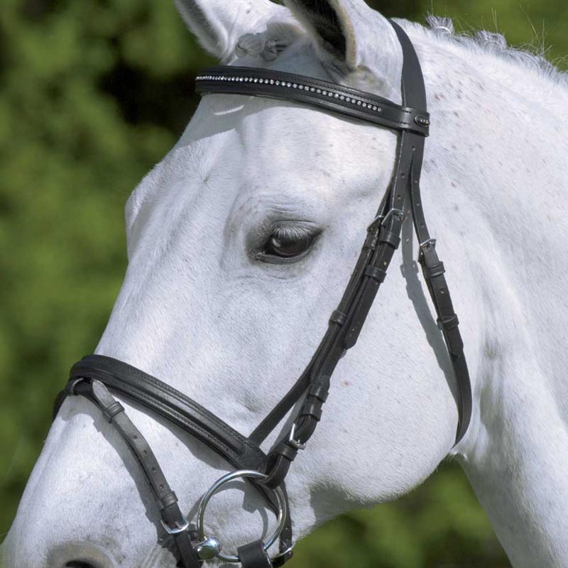 Englisch Zaum Star Diamond mit Strass, verschiedene Farben. Leder Zaum komplett, mit vorne gerade und farbigen Strass, beschichtet Nasenriemen und Lünette, Nickel Schnallen, Zügel 19mm Leinwand.