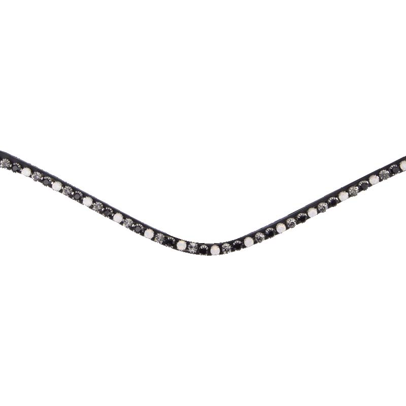 Waldhausen X-Line Glam Stirnband aus hochwertigem Leder mit abwechselnd angeordneten Strasssteinen. Ideal für Turniere und den englischen Reitsport. Das Waldhausen X-Line Glam Stirnband ist ein stilvolles Accessoire, das der Trense des Pferdes einen Hauch von Eleganz und Glanz verleiht – perfekt für Turniere, offizielle Veranstaltungen und Disziplinen des englischen Reitens. Gefertigt aus hochwertigem Leder, bietet es Langlebigkeit und eine anatomische Passform für optimalen Tragekomfort, um Druckstellen auf der Stirn des Pferdes zu vermeiden. Die wechselnden Strasssteine sorgen für eine edle Optik und funkelnde Highlights, ohne überladen zu wirken – ideal für Reiter, die sich mit Stil und Klasse abheben möchten, sei es im Wettkampf oder beim Training. Kompatibel mit Trensen mit austauschbarem Stirnband.