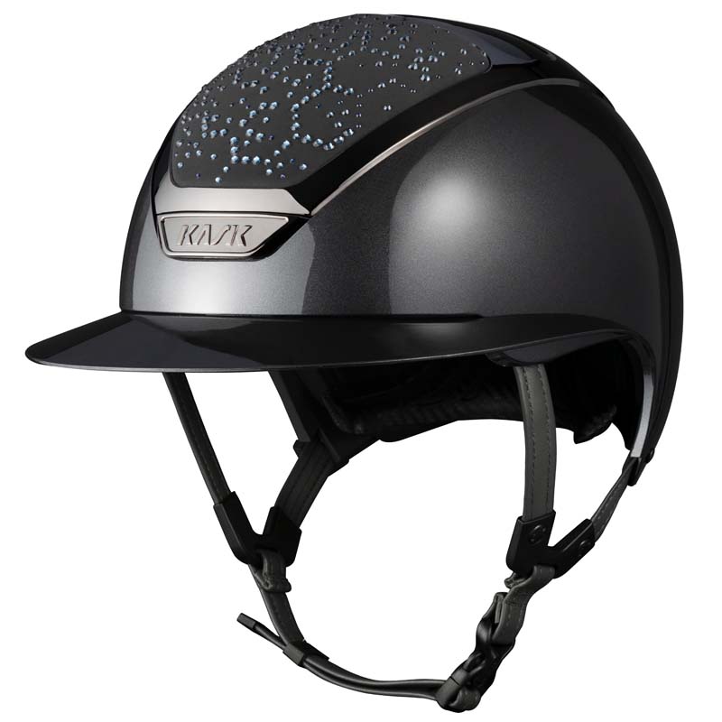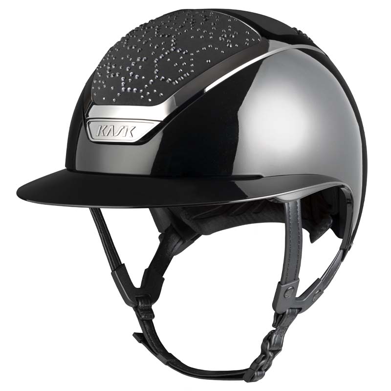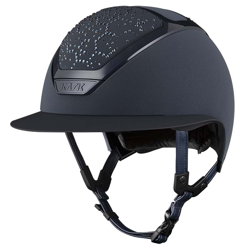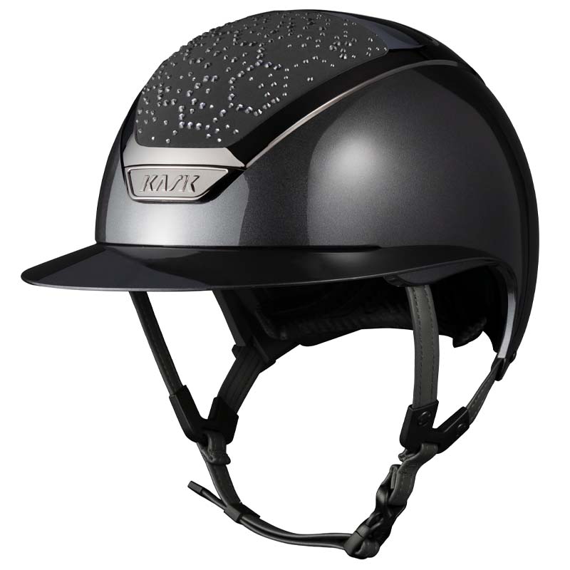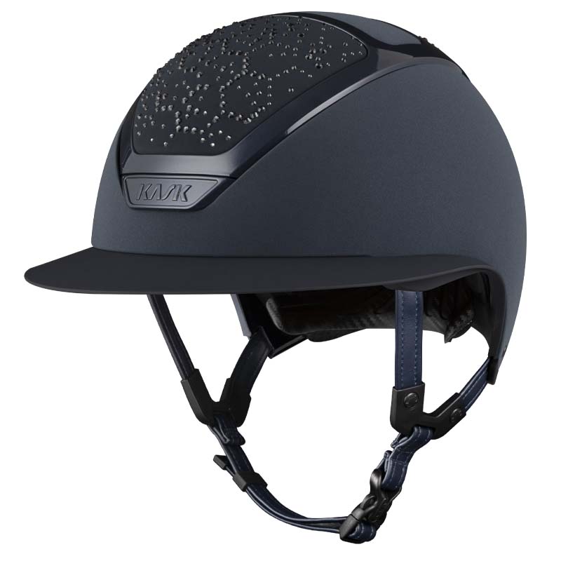 Der KASK Star Lady ANIMA Reithelm ist ein Premium-Modell mit breiter Visor, geschätzt von Reiterinnen, die Eleganz und Sicherheit suchen, insbesondere für Turniere auf hohem Niveau. Die Vorder- und Rückseite der Helmschale sind mit Stoff überzogen und mit Kristallen in der Vibe-Konfiguration verziert, mit einem charakteristischen Design im Wabenstil. Der Helm ist vollständig personalisierbar und in glänzender oder matter Ausführung sowie in 3 Swarovski-Farben erhältlich: Montana Mix, Graphite Mix und Greige.