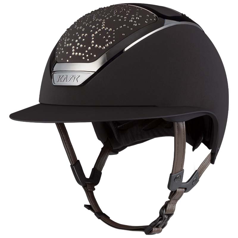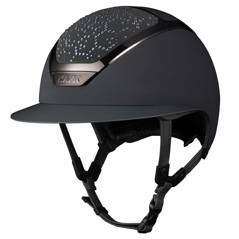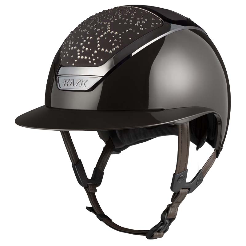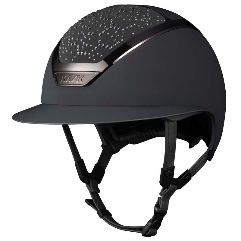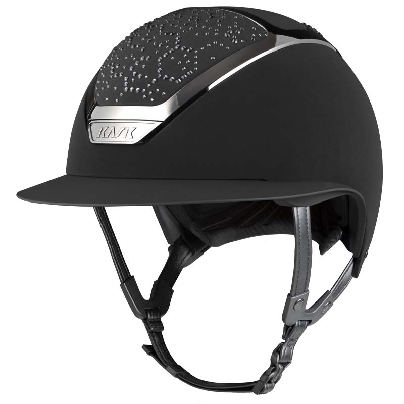 Der KASK Star Lady ANIMA Reithelm ist ein Premium-Modell mit breiter Visor, geschätzt von Reiterinnen, die Eleganz und Sicherheit suchen, insbesondere für Turniere auf hohem Niveau. Die Vorder- und Rückseite der Helmschale sind mit Stoff überzogen und mit Kristallen in der Vibe-Konfiguration verziert, mit einem charakteristischen Design im Wabenstil. Der Helm ist vollständig personalisierbar und in glänzender oder matter Ausführung sowie in 3 Swarovski-Farben erhältlich: Montana Mix, Graphite Mix und Greige.