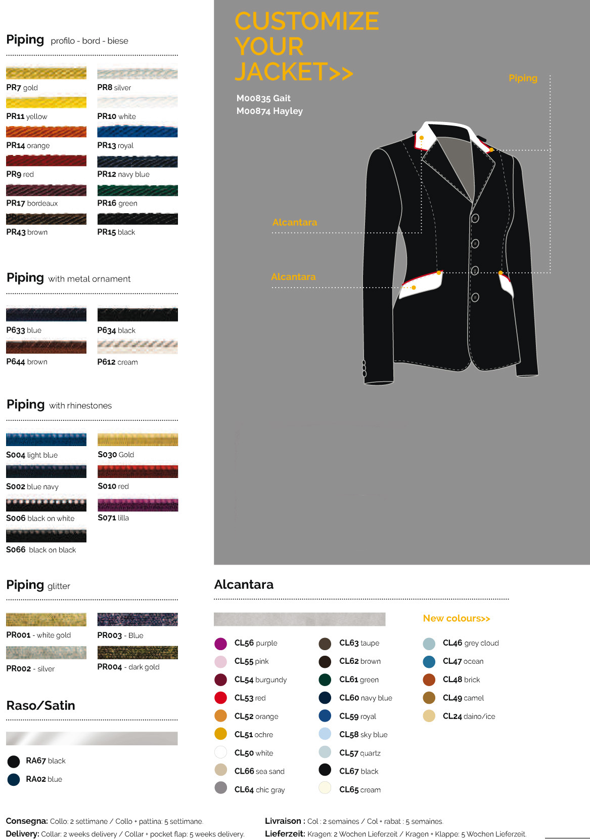 Supplement nach eigenem Jacke Wettbewerb Equiline Frau. Werden individuelle Kragen und Taschenklappe der Jacke Equiline gekauft in unserem Online-Shop. Die Bearbeitungszeiten sind ca. 5 Wochen für kundenspezifische Hals und Taschendetails.