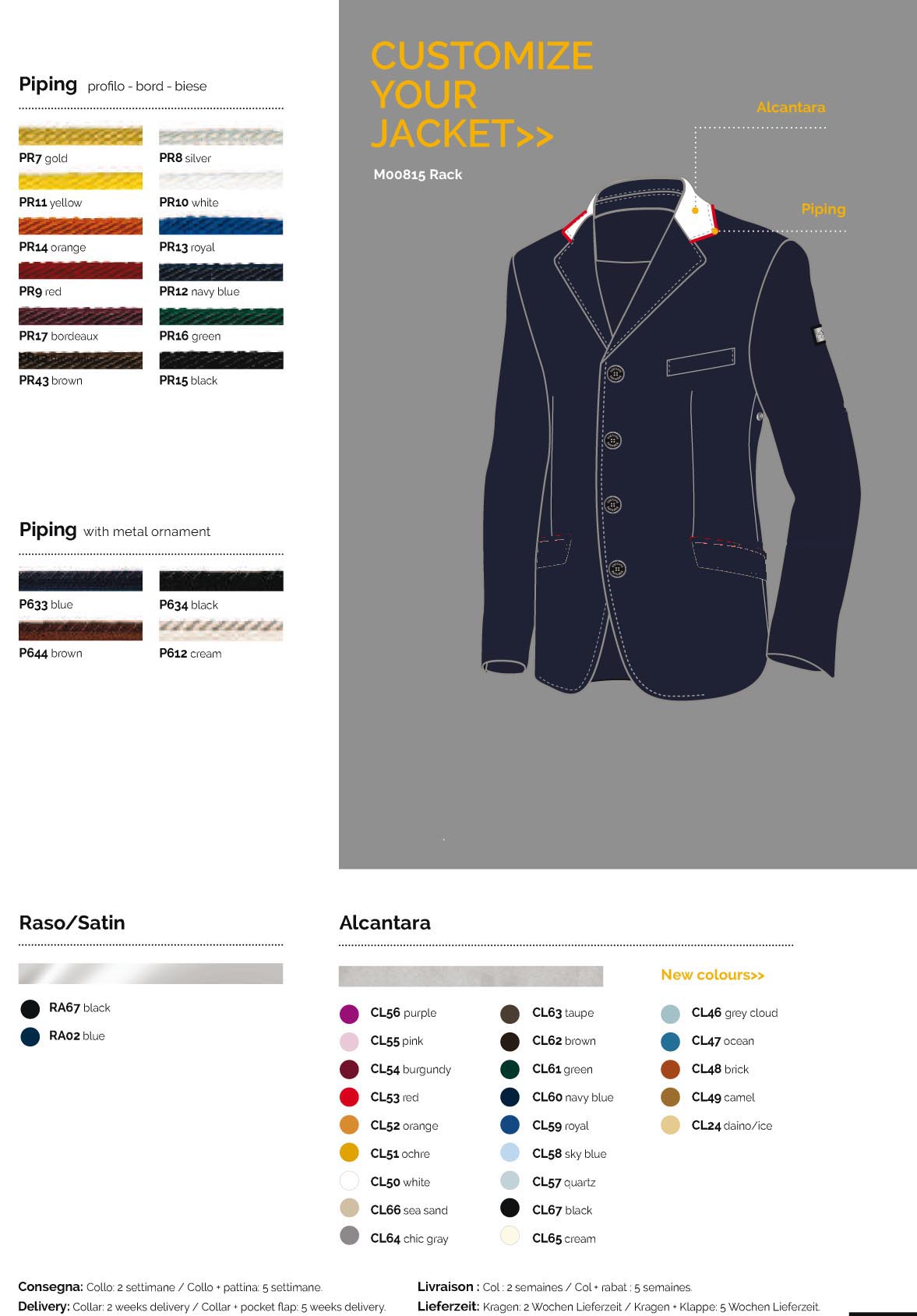 Um die Farbe der Rohrleitungen und Alcantara wählen, finden Sie unter “Technische Daten Form”. Nach Abschluss des Erwerbs, einfach in den Noten der Warenkorb die Farben gewählt angeben.