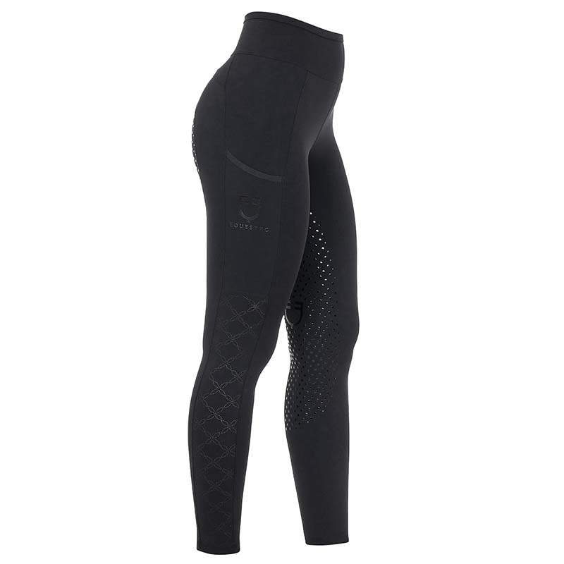 Die Equestro Damen Reitleggings mit Full Grip sind ideal für die warme Jahreszeit. Sie bestehen aus leichtem, bi-elastischem Funktionsmaterial und verfügen über einen perforierten Einsatz entlang des Beins mit dekorativem floralen Muster, der für zusätzliche Belüftung sorgt und gleichzeitig einen femininen Look verleiht. Die High-Waist-Passform bietet eine figurbetonte Silhouette und hohen Tragekomfort.