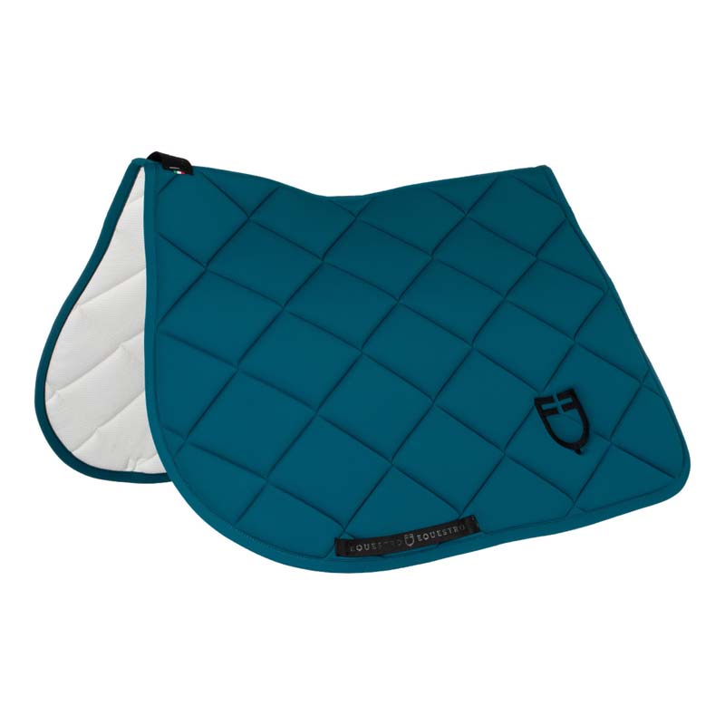 Die Equestro GP Schabracke für englisches Reiten aus gepolstertem Funktionsmaterial bietet Komfort, Stabilität und Atmungsaktivität. Das Waben-Innenfutter verbessert die Schweißableitung und hält den Pferderücken kühl und trocken. Erhältlich in verschiedenen Farben mit kontrastierender Stickerei (weiß oder schwarz).